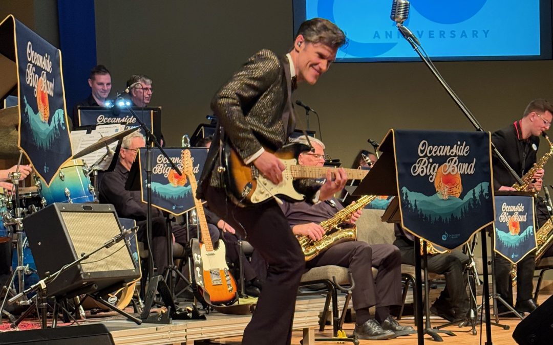 Oceanside Big Band and Zachary Stevenson kicked off the first of many concerts scheduled this year to celebrate Oceanside Music’s 60th year. Two sold out concerts took place on January 3rd, 2026 where audiences were highly entertained as Zachary took the stage with Oceanside Big Band and our trio of back up singers, fondly referred to by Zachary as the Zackettes! A collection of yesteryear cover songs spanning over 6 decades was performed including End of the Line written by Zachary himself. An enormous thank you to Salt Pizzeria for feeding our musicians, all Oceanside Music Members, their family and friends for volunteering numerous tasks, Don Emerson (photography), Knox United Church and its wonderful team, media partners and to all that attended. It was a wonderful day. More to come….